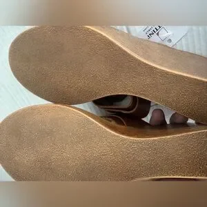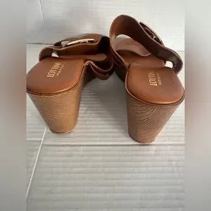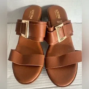Lottini Italian Leather Brown Leather Wedge Sandals Gold Buckle Slides shoes 9