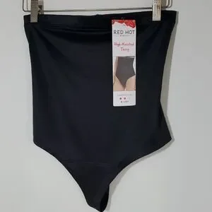 SPANX Red Hot High-Waisted Black Thong Size XL NWT