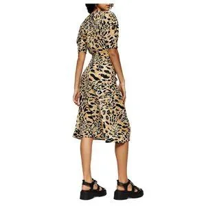 Topshop Leopard Print Mock Wrap Midi Dress Sz 4
