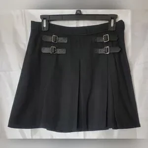 Stylish black pleated skirt featuring chic buckle details. Perfect for any occasion. From Hot Topic with no tags, no callouts.