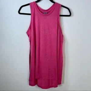 Work up a sweat in this breathable lightweight tank top with a hi low hem