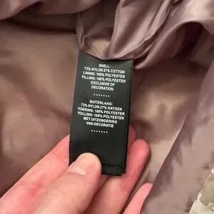 Materials: 73% Nylon / 27% Cotton (Shell); 100% Polyester (Lining/Fill).