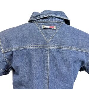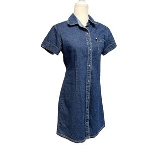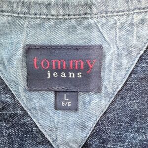 Vtg 90s Tommy Jeans Denim Mini Shirt Dress Womens L Western Rodeo Cowgirl Prep