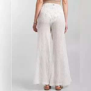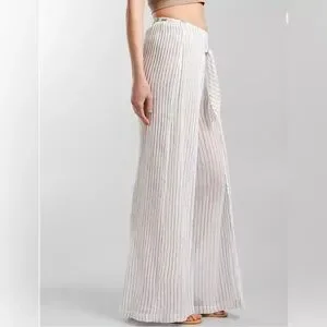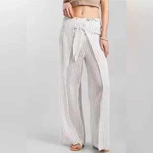 In great condition! Make me offers & bundle. Perfect beach cover up striped lightweight pants. Has elastic waistband on back of pants and adjustable bow tie on front