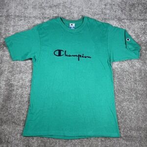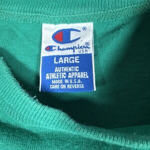 Vintage Champion T-Shirt Men's Large Green Logo Spellout USA Made Single Stitch