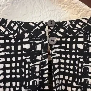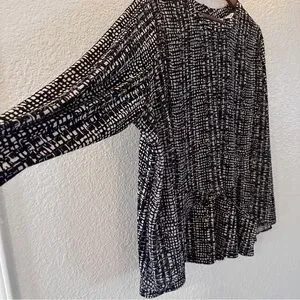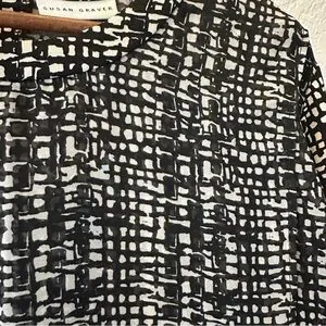Susan Graver Plus 3X Black White Geometric Print Pleated Blouse Top Career Chic