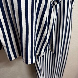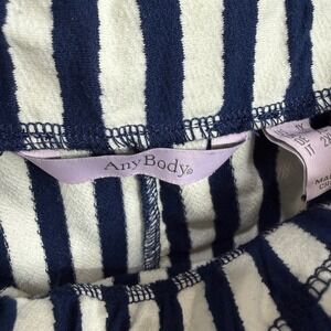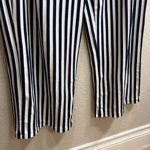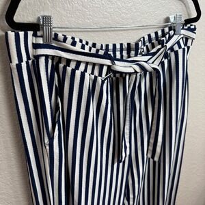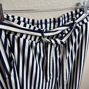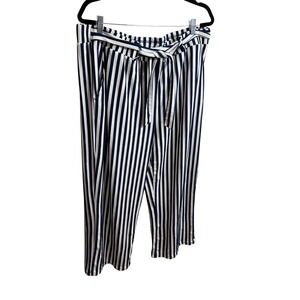 AnyBody Womens Size 1X Navy White Stripe Paperbag Waist Wide Leg Cropped Pants
