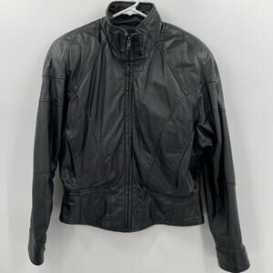 Wilson Thinsulate Women's Vtg. Leather Moto Jacket, Black, Sz. M 80s 90s *FLAW*