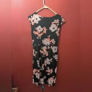 Connected Apparel Black and Pink Floral Midi Dress
