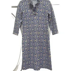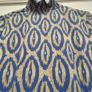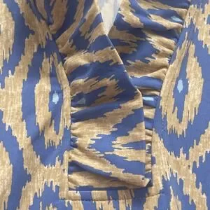 J McLaughlin XS Dress Ruffled Collar LS Ikat Pattern Blue