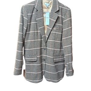 🌸🔥Topshop Women's Brown Botton Houndstood Pattern Blazer size 8 NWT