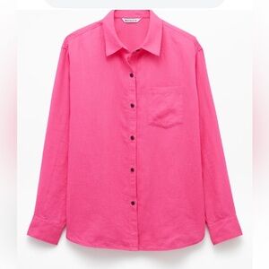 Excellent, like new condition relaxed fit washable linen button top that can be worn open, buttoned, under a jacket or over a tank top.