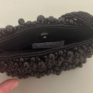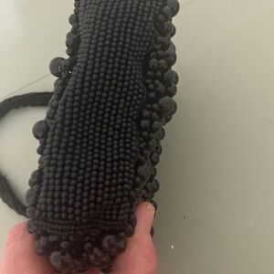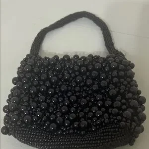 Stylish black beaded handbag with a textured, eye-catching design. Lightweight and easy to carry for day or evening wear. Versatile black color complements many outfits. Crafted with attention to detail for a polished look.
