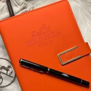 Hermès🐎 Orange Leather VIP Refillable Notebook & Pen Gift Set