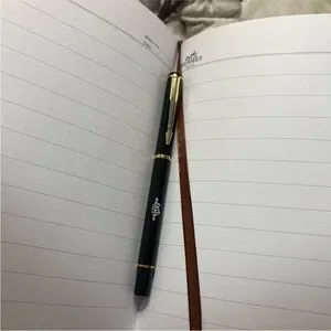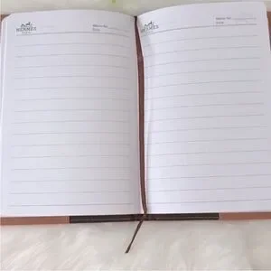 Blank pages inside are Hermès branded and lined for use as journal, planner or personal agenda. Perfect portable size for home or office. Classic black elegant logo pen can be stored in notebook’s pen slot feature.