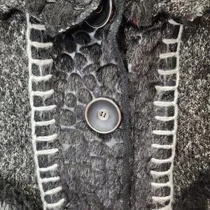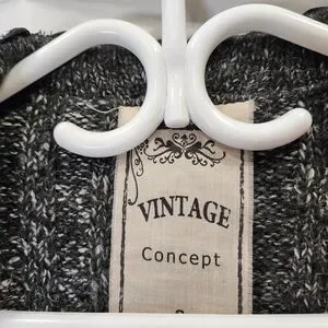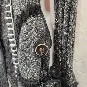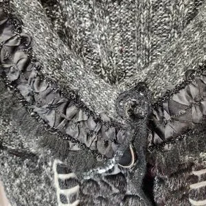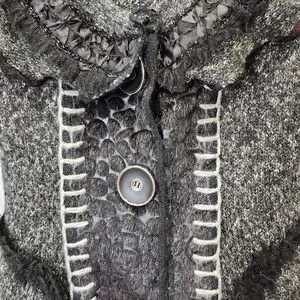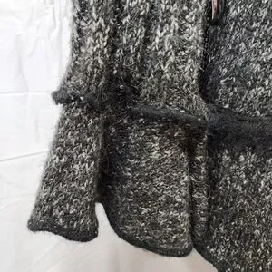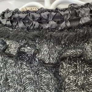 Romantic Knit Cardigan Charcoal Gray Ruffle Trim Vintage Style Button Front Size
