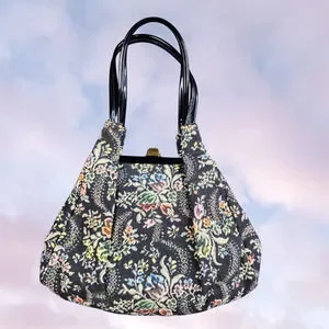 Vintage 60s Floral Carpet Hobo Bag Retro Purse Tapestry Boho Handbag Cottagecore