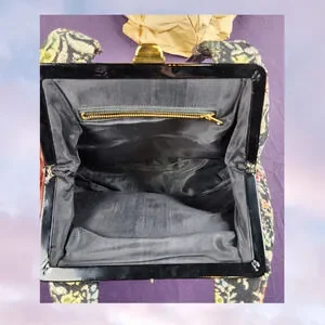 Vintage 60s Floral Carpet Hobo Bag Retro Purse Woven Formal Dance Wedding Party Night Out Tapestry Boho Shoulder Black Blue Green Red Colorful White Handbag Tote Cottagecore. This retro purse showcases intricate patterns and a timeless boho aesthetic, making it a perfect accessory for vintage lovers and collectors. Has a clasp closure at the top and an inside zipper pocket.