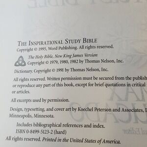 The Inspirational Study Bible: Life lessons from the Inspired Word of God; hardcover New King James Version, 1995.