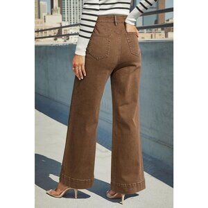 Women Casual High Waisted Wide Leg Denim Jeans Stretchy Loose Pant with Pockets