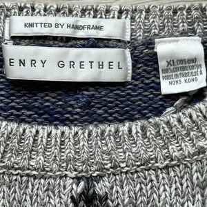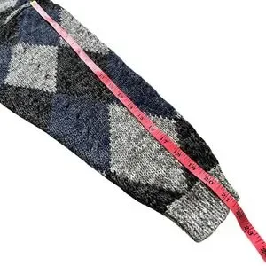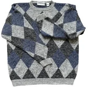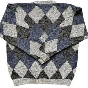 VTG HENRY GRETHEL Sweater Argyle Gray Blue XL Y2K 90s Handframe Knit Abstract