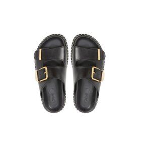 Precision stitching outlines the welt of this Spanish-crafted calfskin-leather slide, accented with the brand's signature logo-engraved hardware for a refined finish.