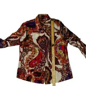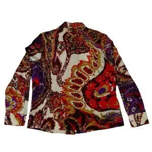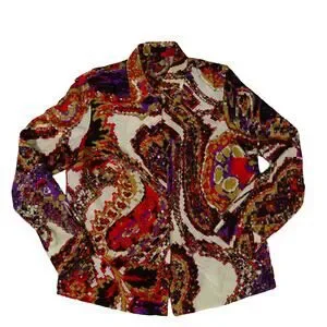 Escada Paisley Silk Cotton Button Up Blouse Long Sleeve Ladies Size 42