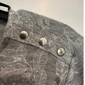 Liz Claiborne Gray Floral Work Top Button Shoulder 3/4 Sleeve Size L