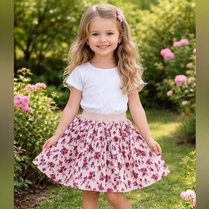 🌸 Pippa & Julie Girls Floral Velour Pleated Skirt – Size 5