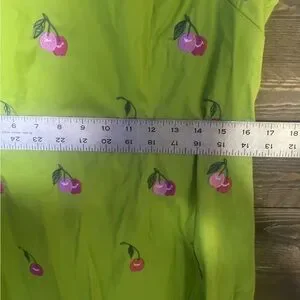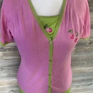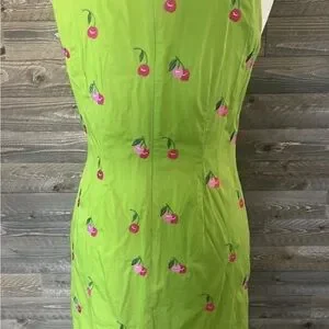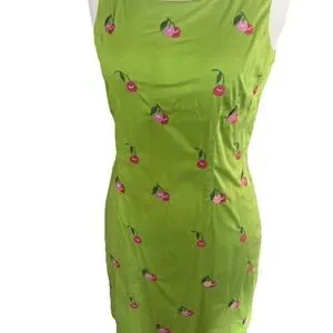 • Color: Lime green with pink cherry embroidery