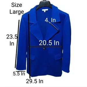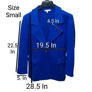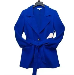 Women’s Jacket Belted Blazer Size S. M. L. Royal Blue Side Pockets Polyester New
