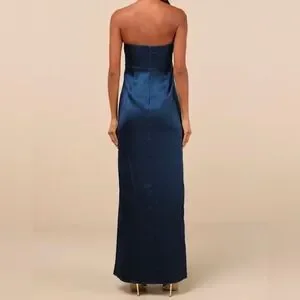 Lulus Memorable Entrance Dark Blue Strapless Satin Maxi Dress, Size XL
