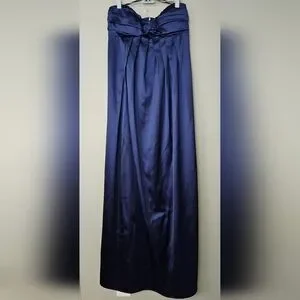 From the moment you walk in, you'll be bringing the glamorous vibes in the Lulus Memorable Entrance Dark Blue Strapless Satin Maxi Dress! Sleek woven satin (with pleated details) shapes this stunning dress that has a strapless bodice with a sweetheart neckline (with hidden no-slip strips) and lightly padded cups. High, empire-style waist tops an A-line skirt that falls to a maxi hem. Hidden zipper/clasp at back.