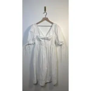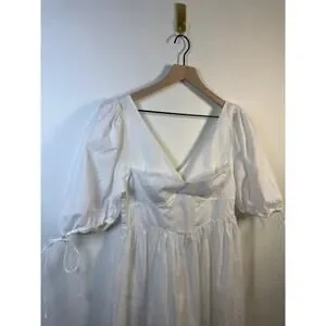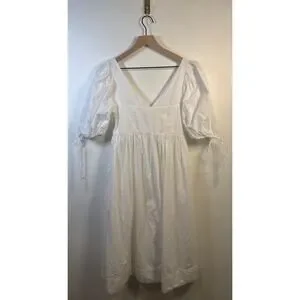 * Tags: for love & lemons, organic cotton midi dress, white puff sleeve dress, v-neck white dress, summer cotton dress, boho white midi dress