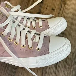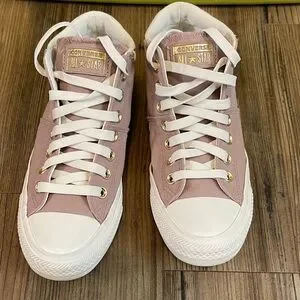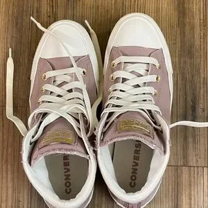 Converse Women's Blush Pink Sneakers mid high size 7.5 gold accents
