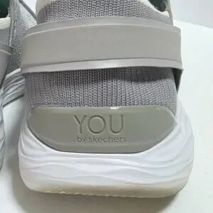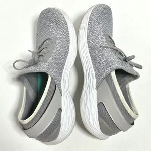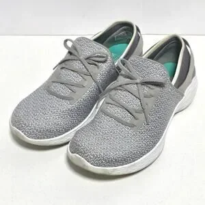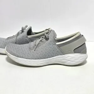 Skechers You Inspire Slip-On Walking Shoe Sneaker Womens 8.5 Gray Faux Lace Up