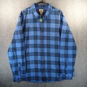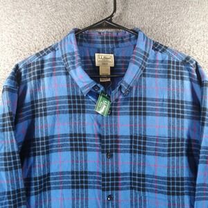 NWT LL Bean Scotch Plaid Flannel Morgan Mens XXL Slim Fit Blue Outdoors