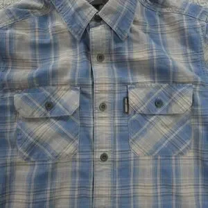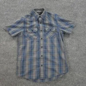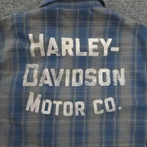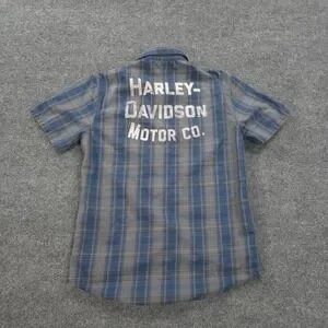 Harley Davidson Shirt Mens Medium Blue Plaid Graphic Motorcycle Biker Mechanic