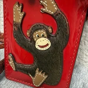 Rare Vintage Coach Red Patent Lanyard with Monkey Design