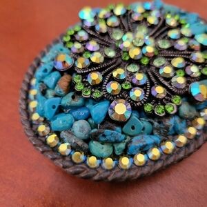 Whimsical Originals Rhinestone and Turquoise Belt Buckle Artisan Made