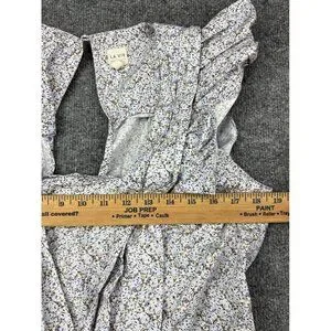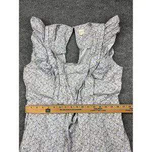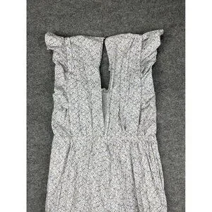 Elegant jumpsuit with ruffle details. Features a subtle floral pattern. Perfect for any occasion.