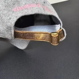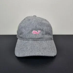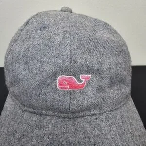 Vineyard Vines Hat Cap Mens Strap Back Grey Spellout Pink Whale Logo Golf Prep