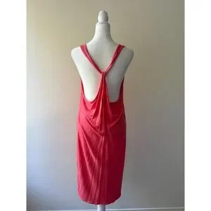 Stay effortlessly stylish and comfortable in this Anthropologie Saturday Sunday coral midi dress. With its breezy tank style and racerback knot design, this dress is perfect for casual days, travel, lounging, or layering. The soft stretch-blend fabric drapes beautifully and moves with you, while the side slits add a touch of ease and comfort.
