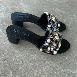 Mystique Dublin Black Rhinestone Sandals Women’s Size 8