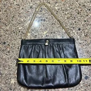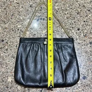VINTAGE 1950’s ANDE Black genuine Leather handbag, Gold chain strap