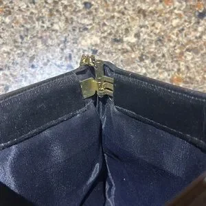 Pre-loved and in great condition for its age. Gold chain strap, tension closure.