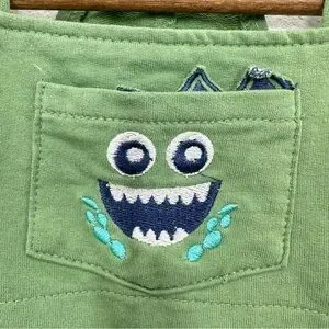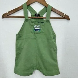 Picapino Toddler Size 24 Month Cotton Snap Overalls Silly Monster Green Shortall