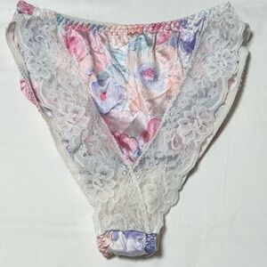 3 pair Vintage Satin Floral and Lace Panties hi-cut