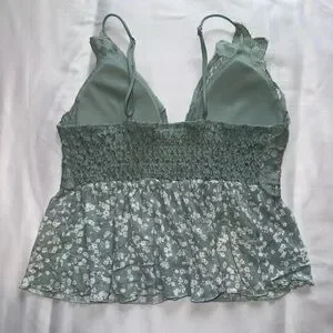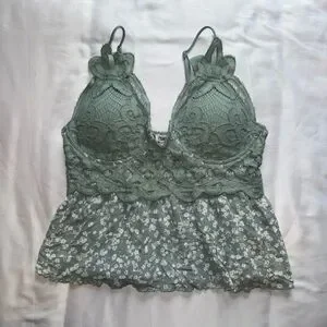Rue21 green and white lace crop top with floral design size Large. Adjustable straps. Great condition. Smoke free home. Offers welcome!!