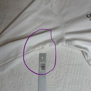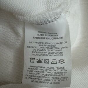 Jordan tag with bold red logo. Black background with white text. Details: one brown spot in the left arm, armpit area. Multiple little stains on the back. Maybe grease? Not very noticeable. No holes.